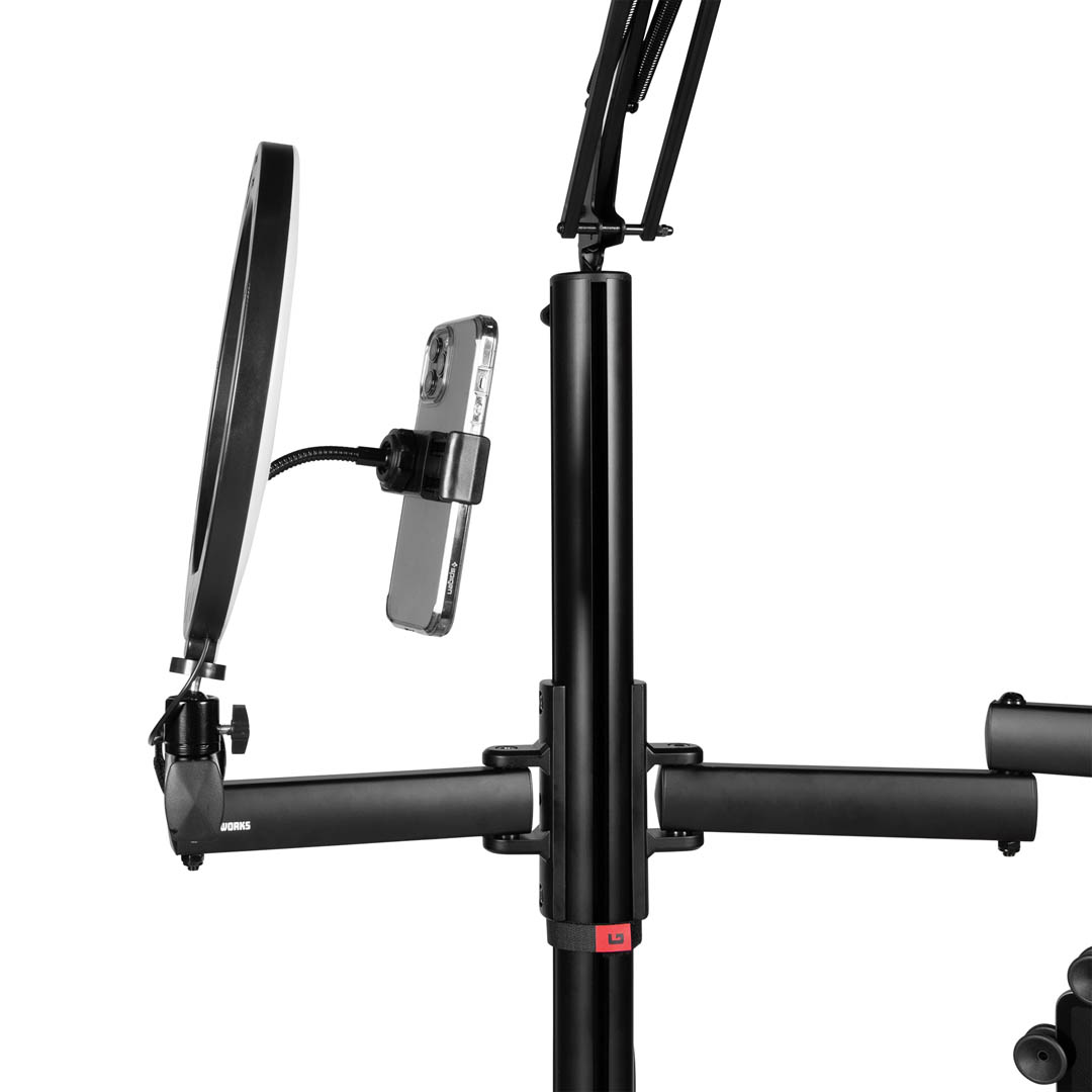 So much innovation and design have gone into every detail. Regain valuable space by clamping the creator tree directly to your desktop. Mount your phone on the included LED ringlight and adjust it to the most flattering angle. A ball-head camera mount with a reversible cold shoe mount will put your camera where you need it. Mounting accessories on the top or the bottom of the extendable arms gives you multiple setup options. Put your microphone at the center of the action with the 360-degree rotating mic boom arm.