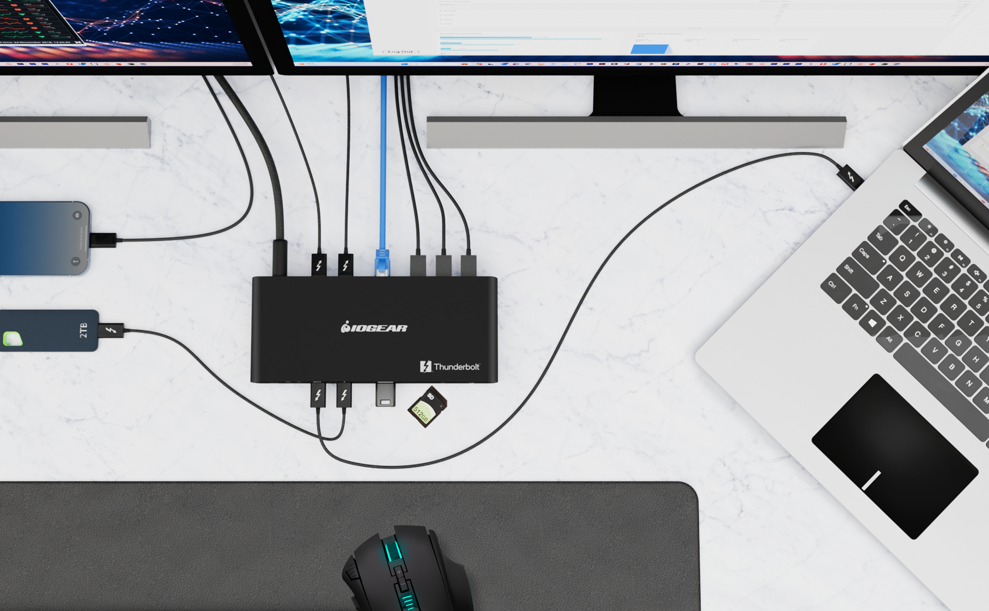 The IOGEAR Quantum Thunderbolt™ 5 Dock Pro is a powerful docking station that transforms your laptop into a fully equipped workstation. With its high-speed Thunderbolt™ 5 connectivity, dual 8K display support, and Thunderbolt™ Share compatibility, it's ideal for creative professionals and hybrid workers who demand peak performance.